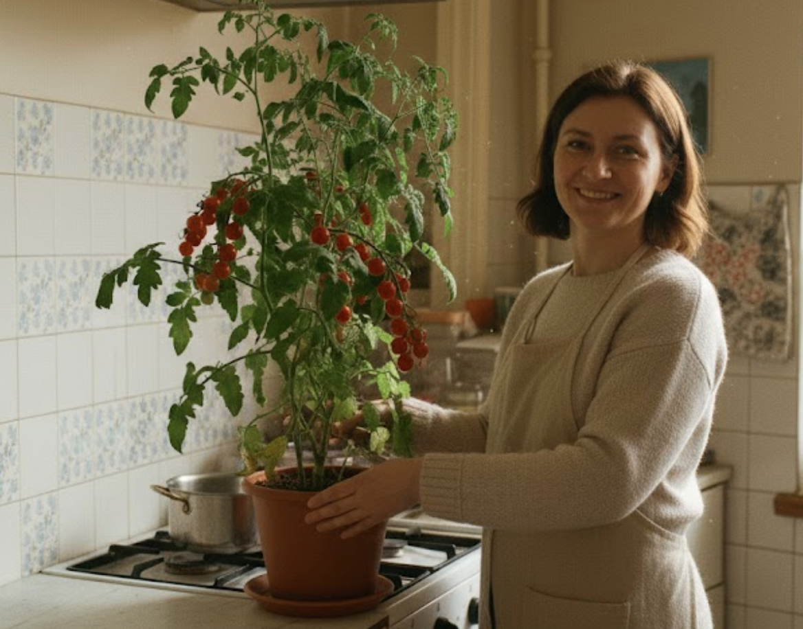 Чесно, я сміялася з того, що боялася, ніби це буде «робота на півдня». Насправді це та ж сама кімнатна квітка, тільки замість листя ти збираєш помідори.